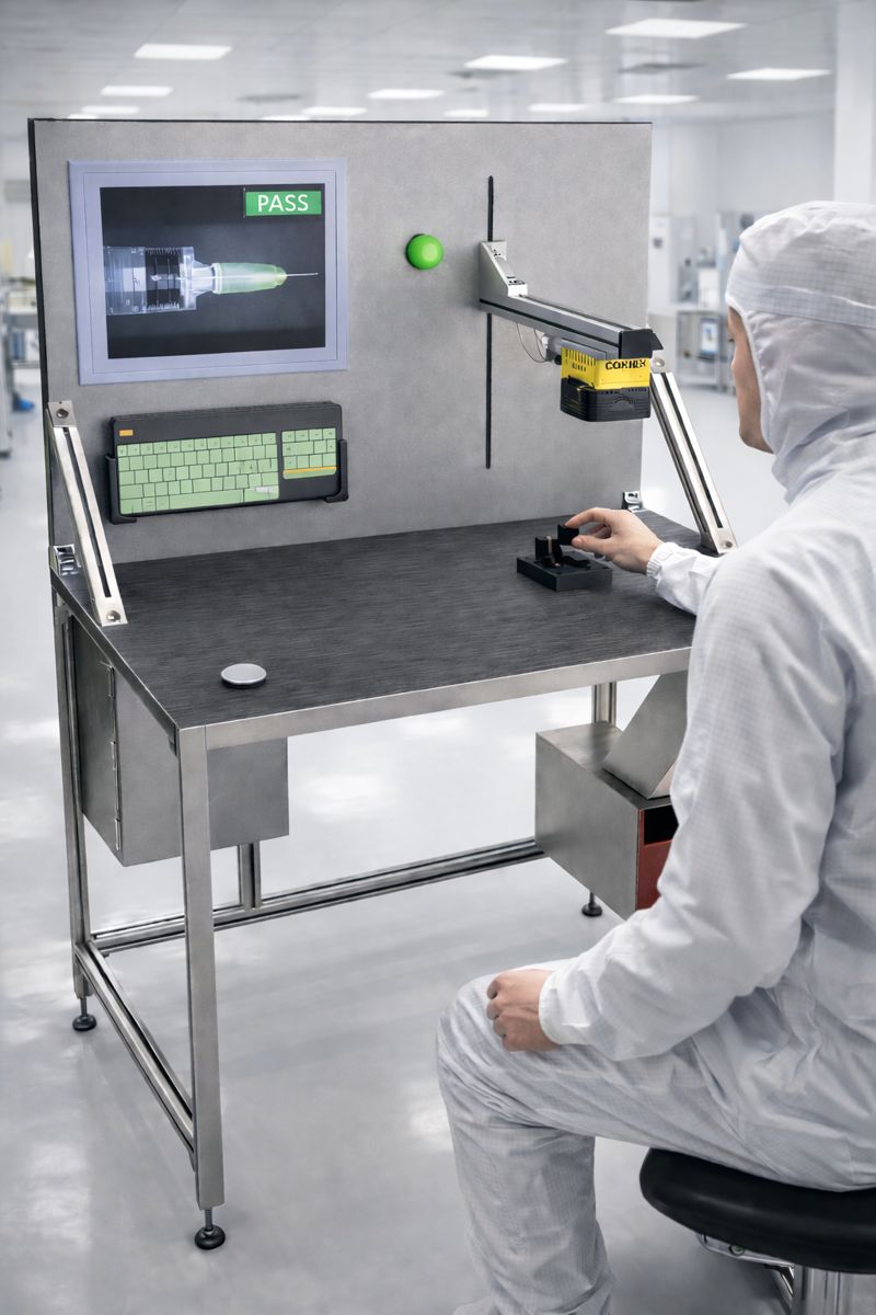 The OTIS XL is a full-size, desk-replacement Operator Table Inspection System designed for permanent installation in production, lab, and cleanroom environments. Built as a standardized, standalone machine vision platform, OTIS XL supports a wide range of vision hardware and integrates seamlessly with leading manufacturers such as Cognex and Keyence. From barcode readers and 2D area cameras to advanced multi-camera and 3D inspection systems, OTIS XL delivers consistent, repeatable inspection performance across demanding applications.